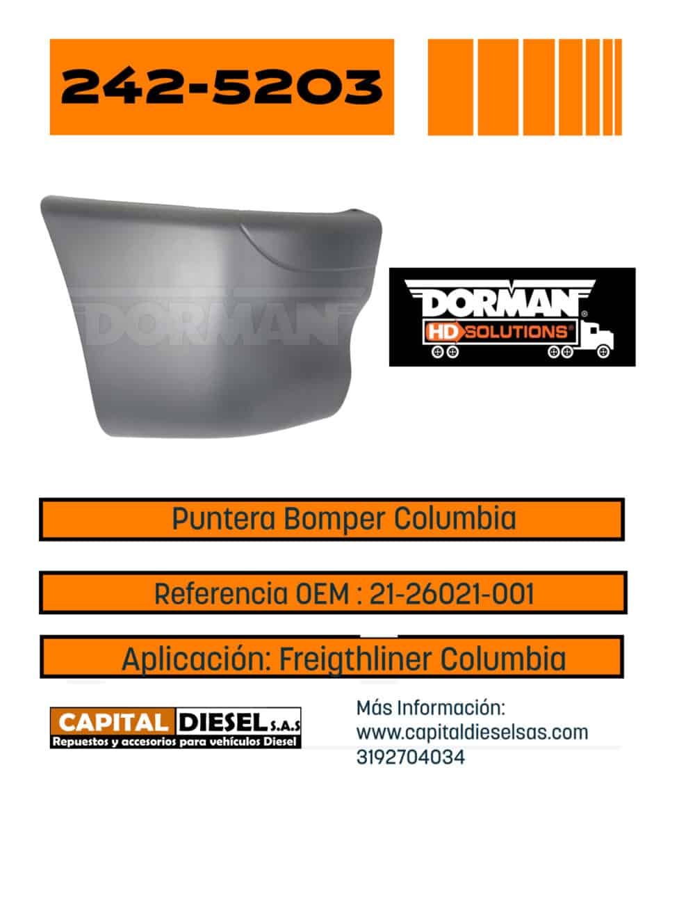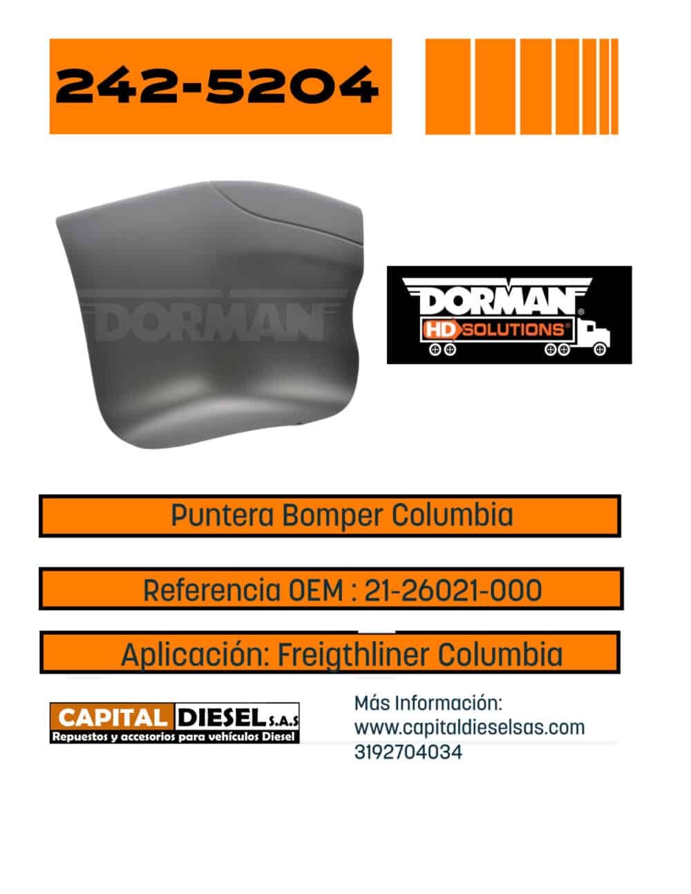PUNTERA BOMPER DERECHA FREIGHTLINER COLUMBIA 21-26021-005 DORMAN