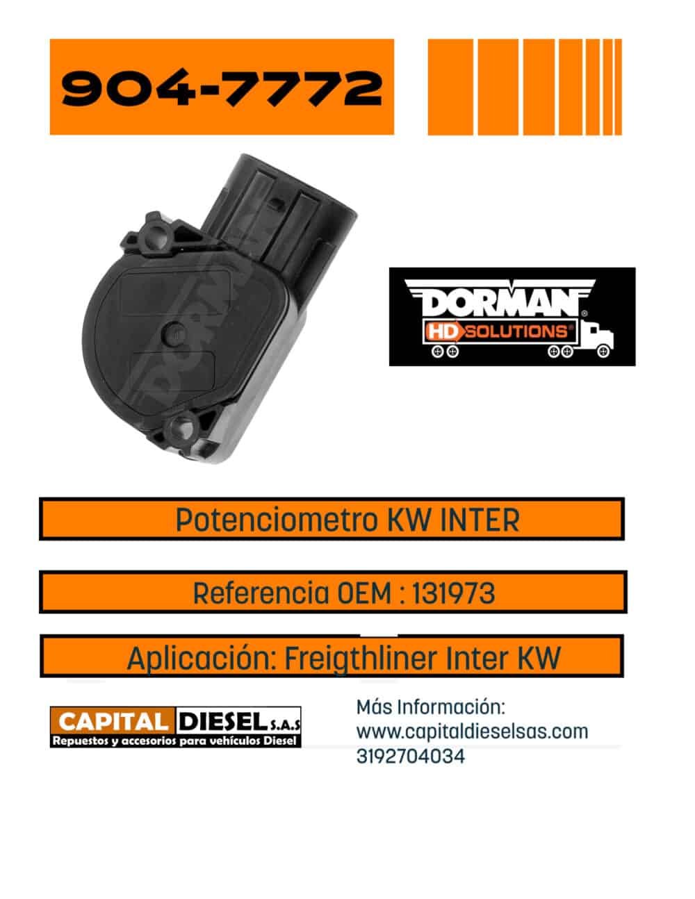 POTENCIOMETRO ACELERADOR INTER 131973 2587164CC91 DORMAN