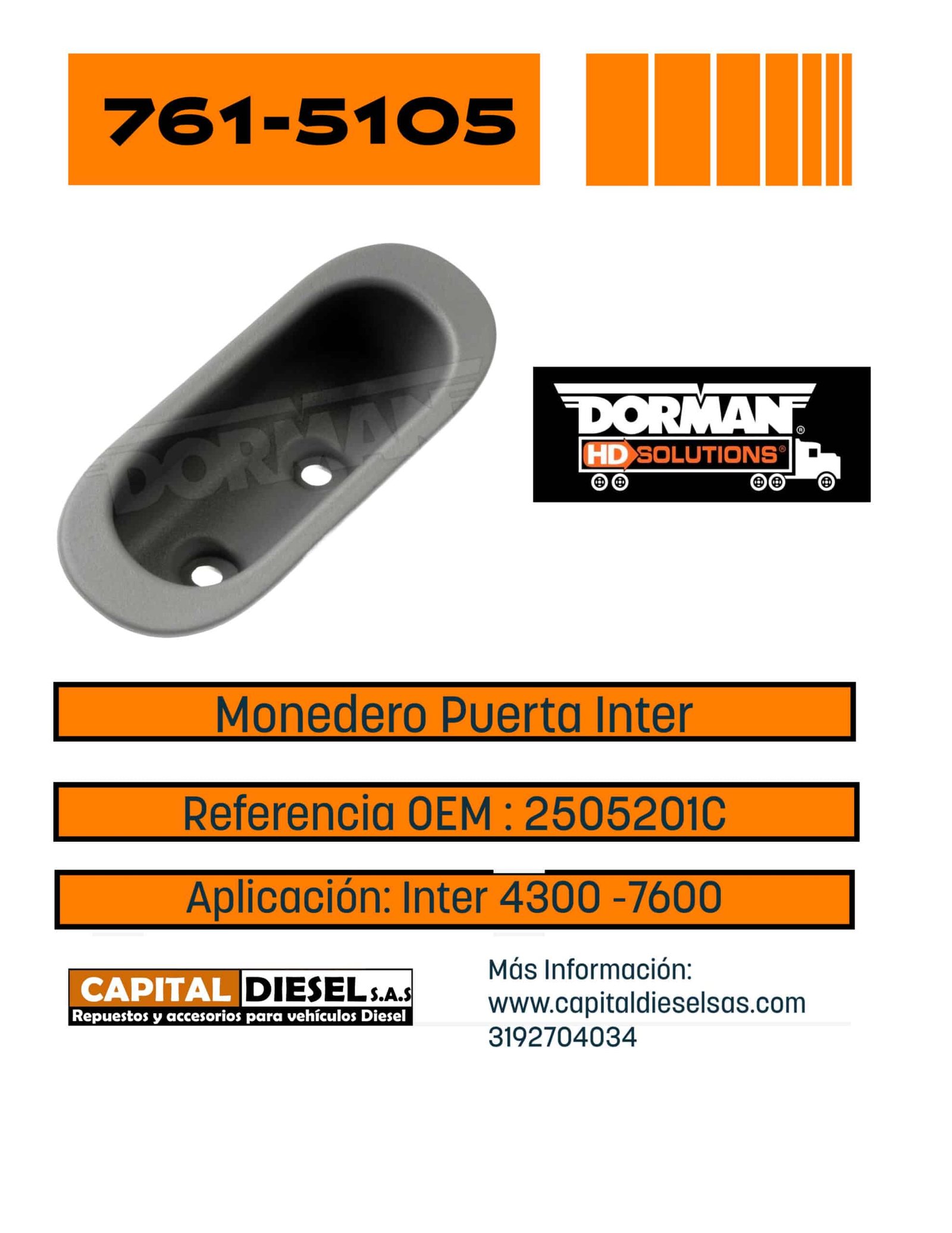 MANIJA MONEDERO PUERTA LH - RH INTER 2505201C1 DORMAN