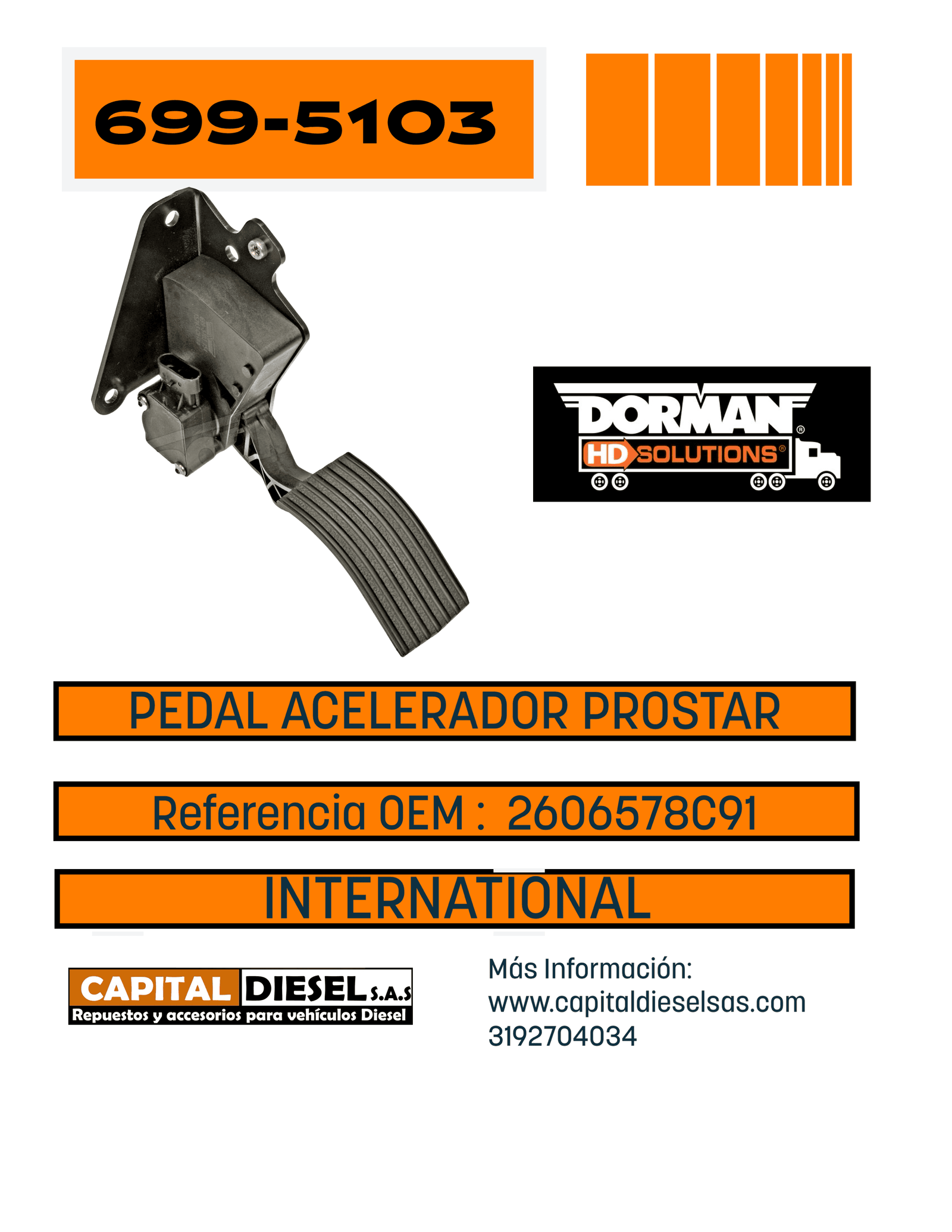 PEDAL ACELERADOR INTER PROSTAR / 4300 / 7600 2606578C91 DORMAN