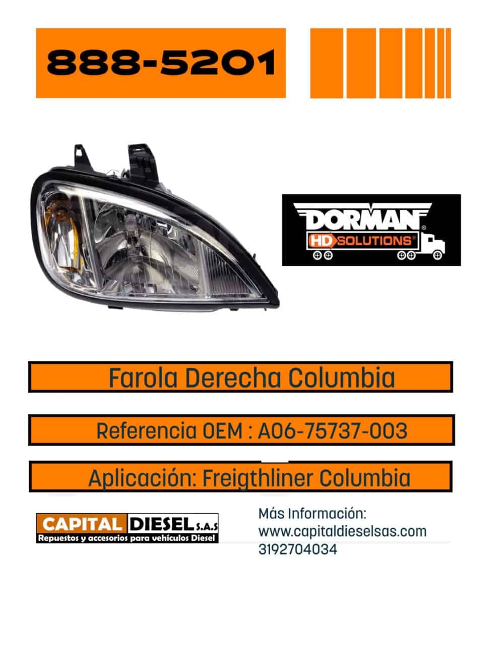 FAROLA DERECHA FREIGHTLINER COLUMBIA A06-75737-005 DORMAN