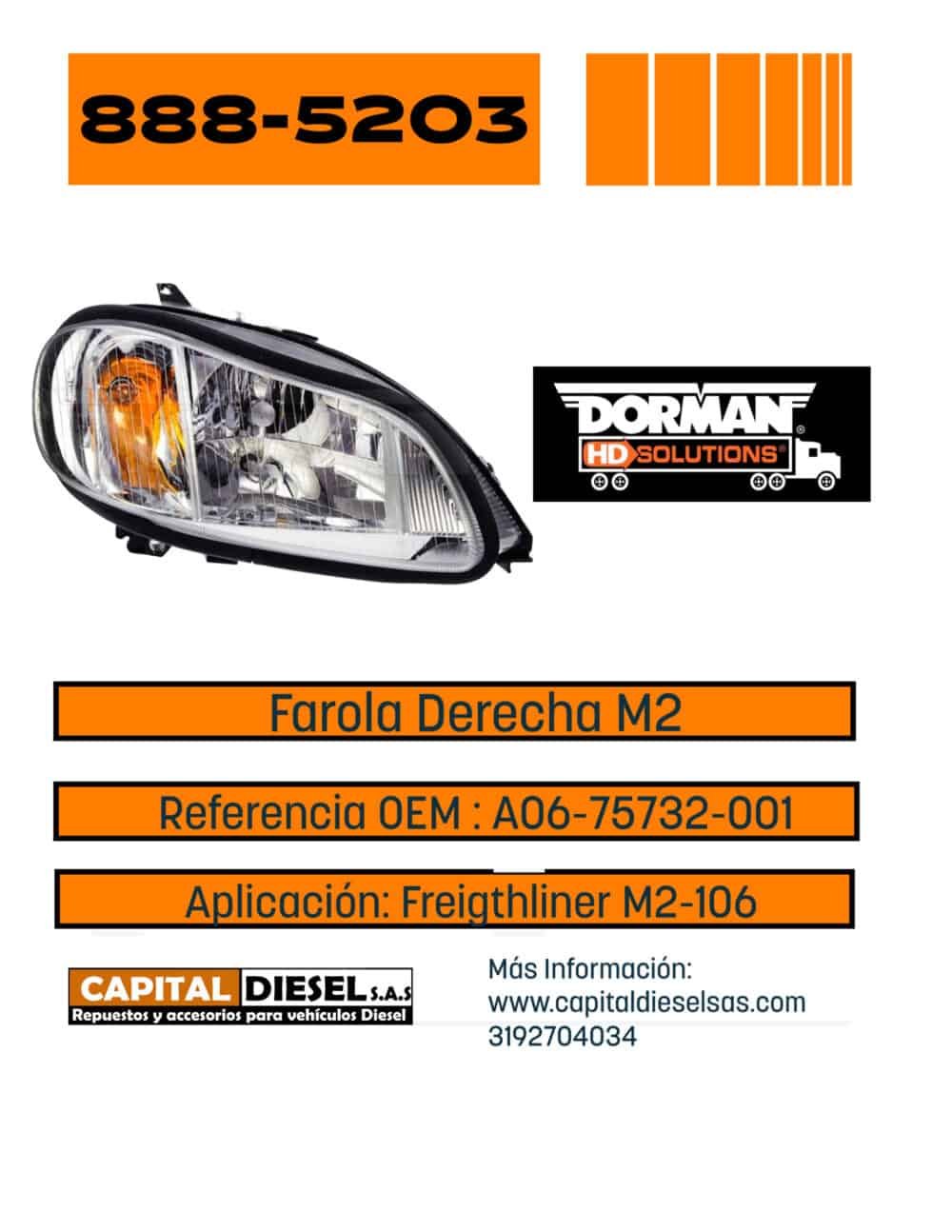 ARO FAROLA DERECHO FREIGHTLINER M2 106 A17-14930-001 DORMAN